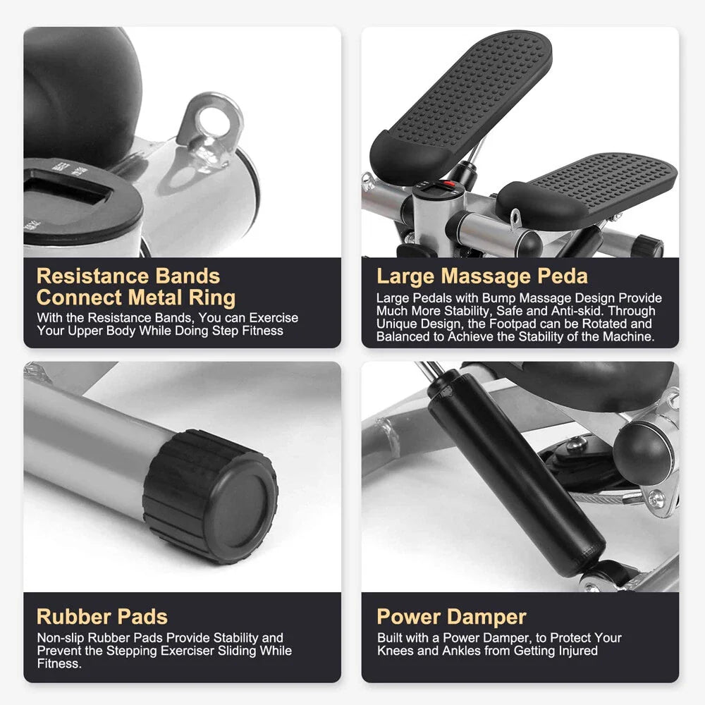Mini Stepper with Resistance Bands & LCD Monitor Home Fitness Stepper Machine